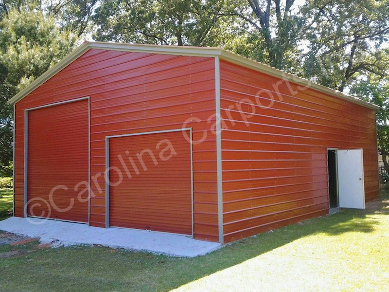 Vertical Roof Style Carport with 8' x 8' Garage Door on Side