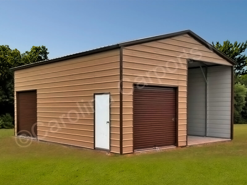 Vertical Roof Style Carport with 8' x 8' Garage Door on Side